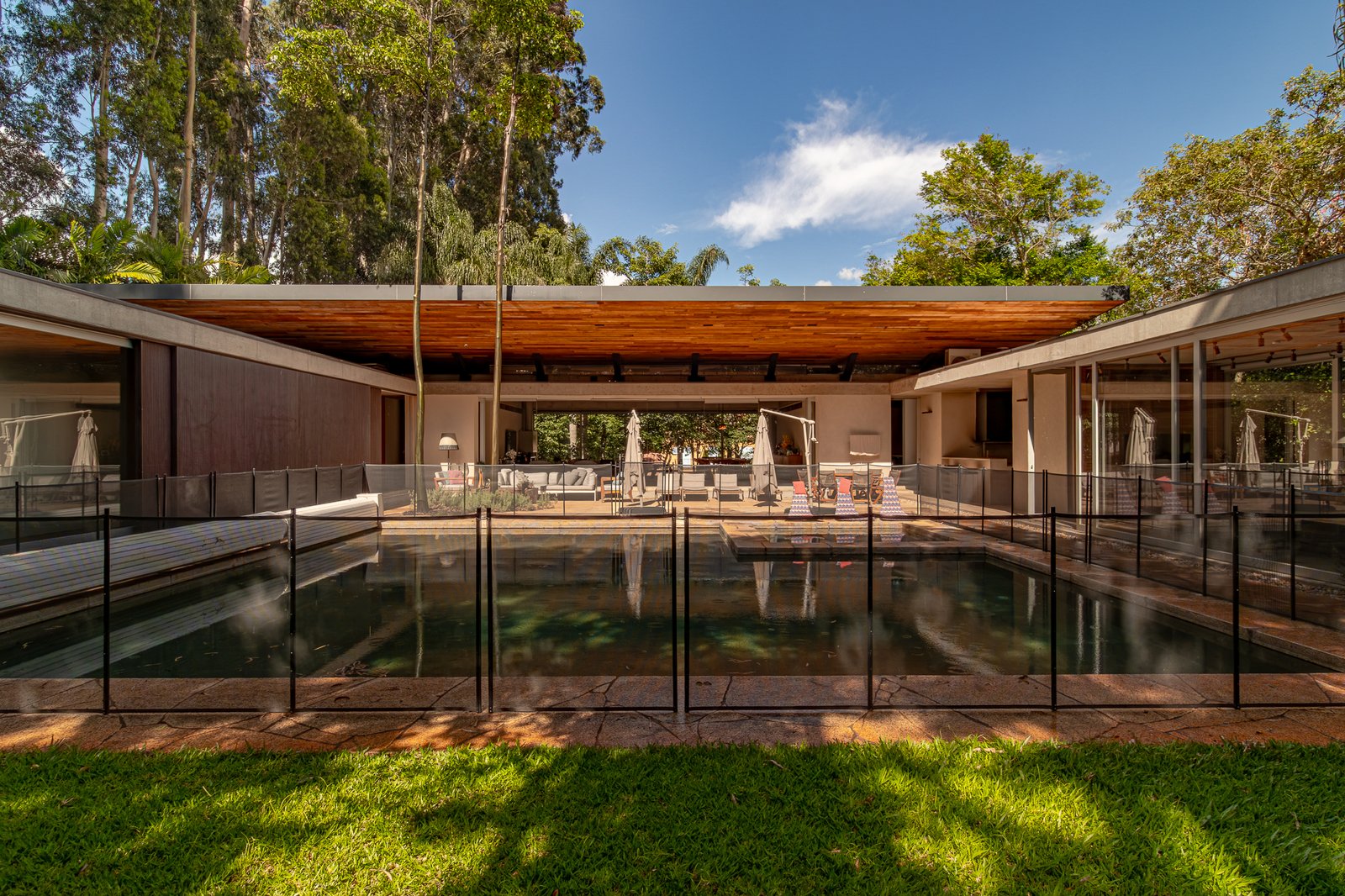 Assinada pelo renomado arquiteto Gui Mattos, a casa impressiona com linhas contemporâneas, amplos painéis de vidro e ambientes generosos que criam uma perfeita harmonia entre o interior e a paisagem ao redor.