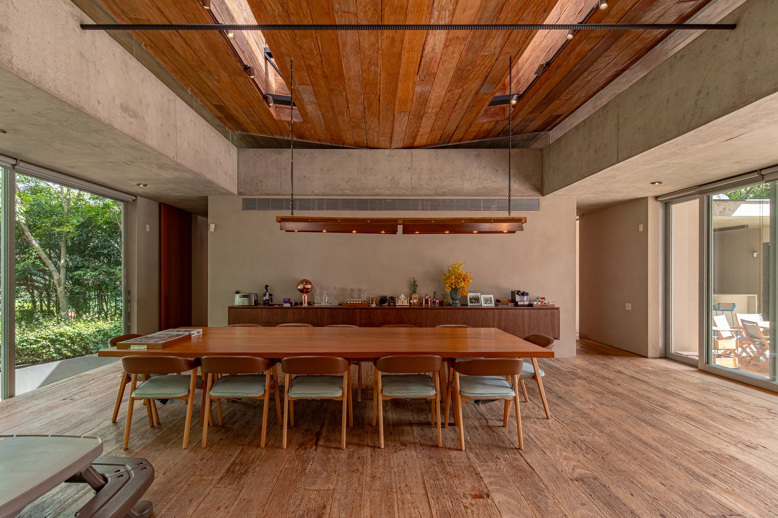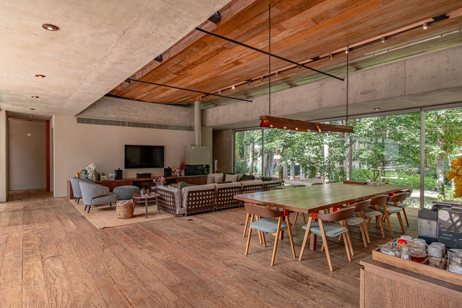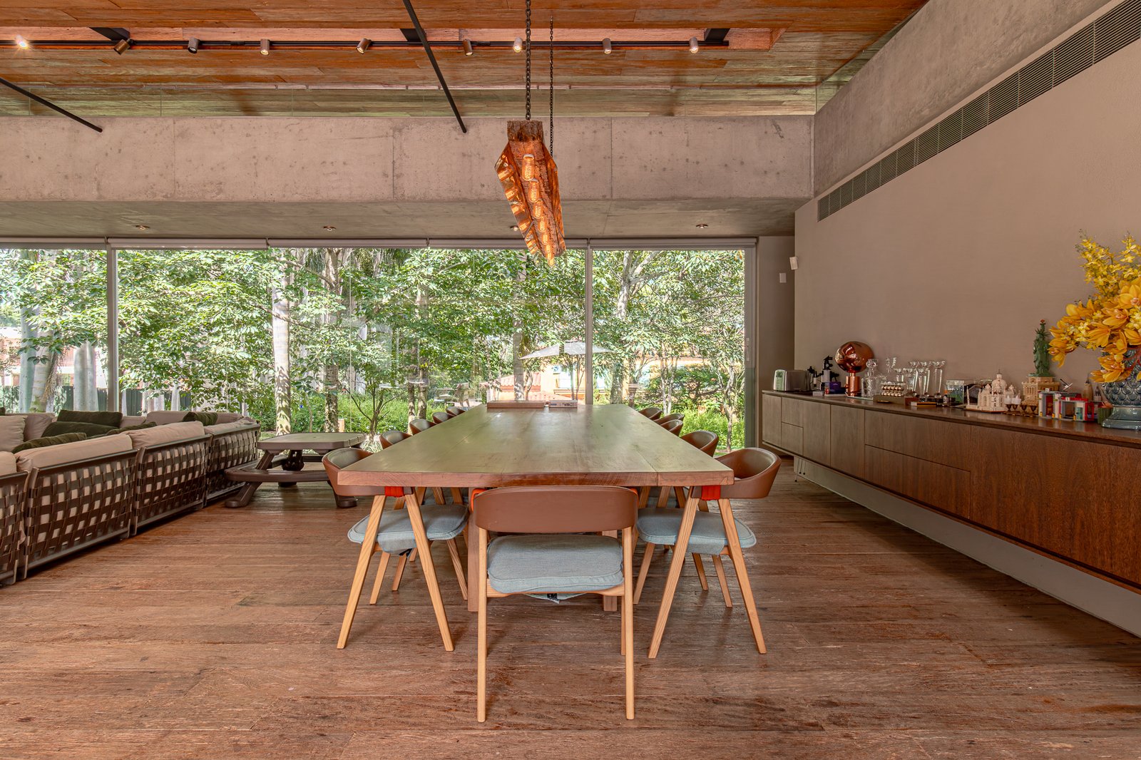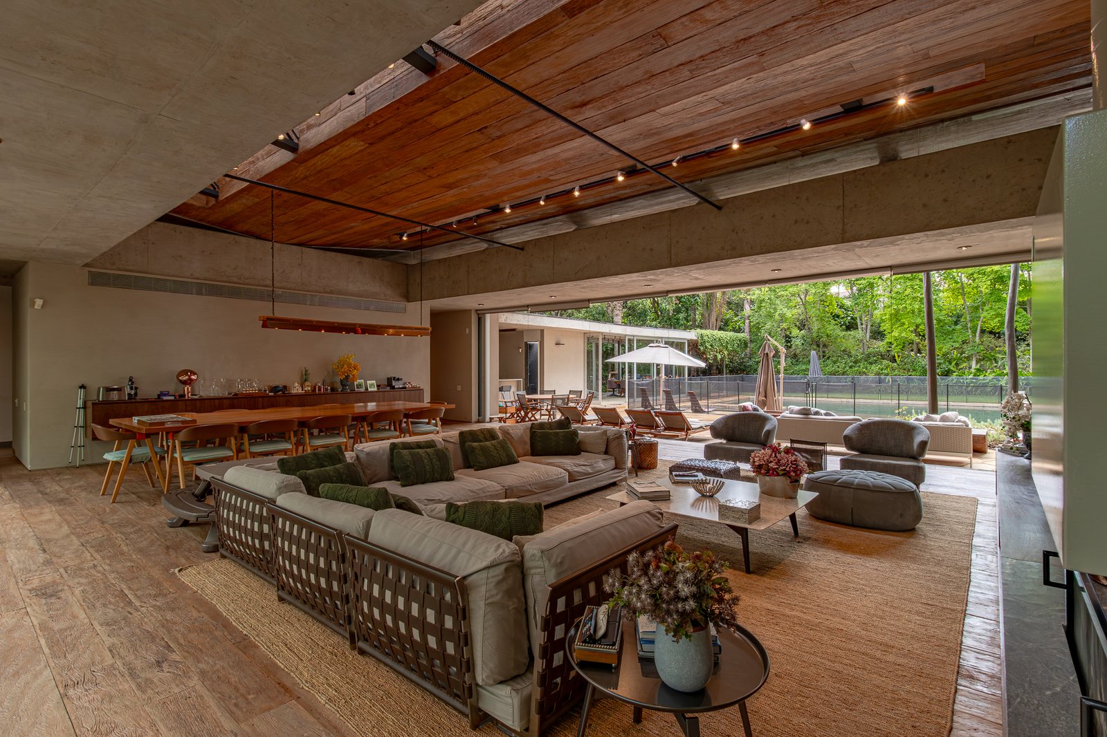 A área social é totalmente integrada: salas amplas, cozinha equipada com armários Ornare e um conceito elegante que une madeira, cimento queimado e elementos naturais com sofisticação e aconchego.