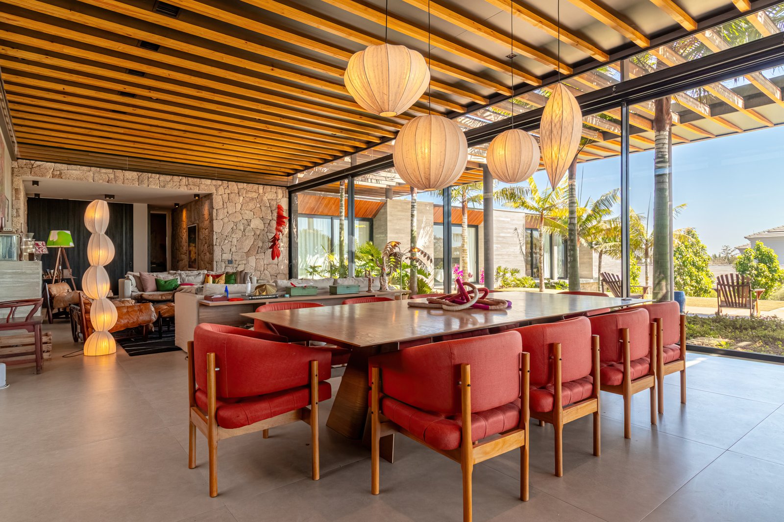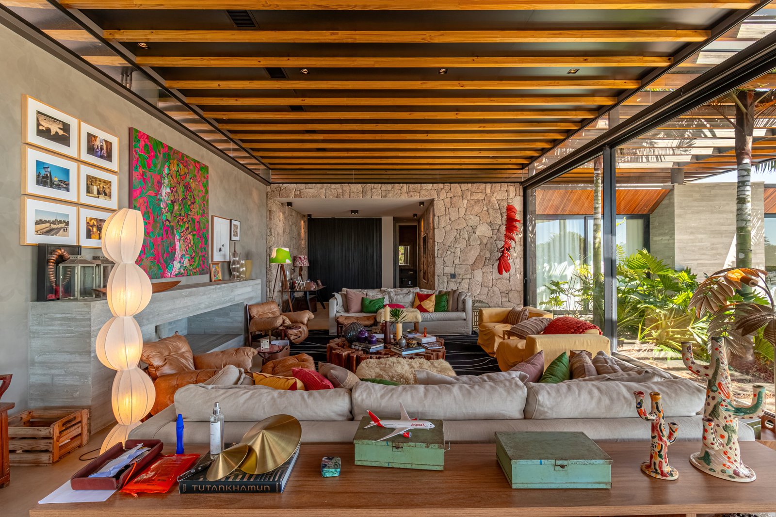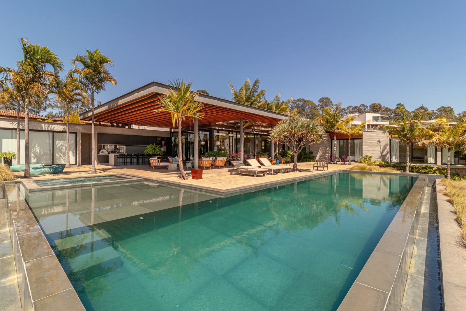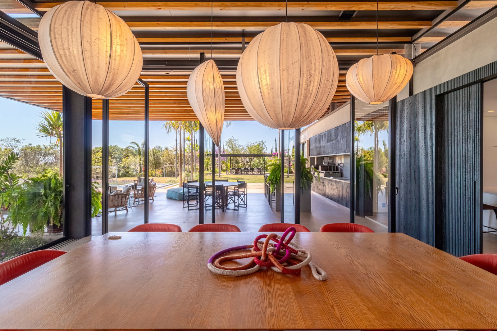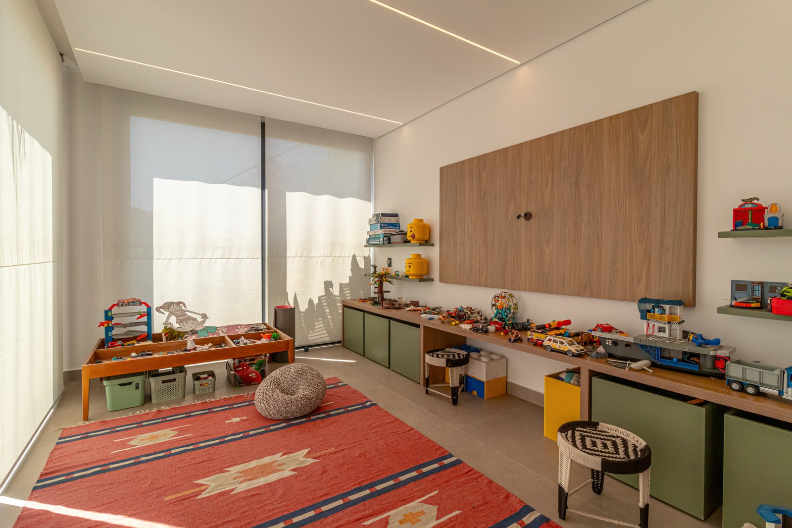 Casa à venda no Condomínio Fazenda da Grama - Itupeva/SP. Residência térrea localizada na parte alta da Fazenda da Grama, em área nobre e silenciosa, fora da rota de aviões e distante dos ruídos do autódromo e de eventos festivos. Com orientação solar norte, o imóvel oferece excelente iluminação natural e conforto térmico ao longo do dia. O projeto arquitetônico é assinado por Lucas Padovani, com interiores desenvolvidos por Paulo Azevedo e paisagismo elaborado por Alexandre Furcolin. A casa conta com cinco suítes, brinquedoteca, quarto de serviço e cozinha equipada com móveis Ornare. Todos os ambientes sociais e o jardim possuem sistema de automação, e a climatização é completa em toda a residência, incluindo uma grelha integrada à sala. A área externa é ampla e contempla um jardim exuberante com pergolado, lareira externa, pomar, horta, campo de futebol e redário. O espaço gourmet é integrado à área social, ideal para receber com conforto e sofisticação. A piscina possui raia, prainha e spa, com aquecimento solar. No rooftop, um generoso deck de madeira oferece vista panorâmica privilegiada. A infraestrutura do imóvel inclui poço artesiano, placas fotovoltaicas, esperas para gerador, tomada para carro elétrico e adega embutida com capacidade para 500 garrafas.