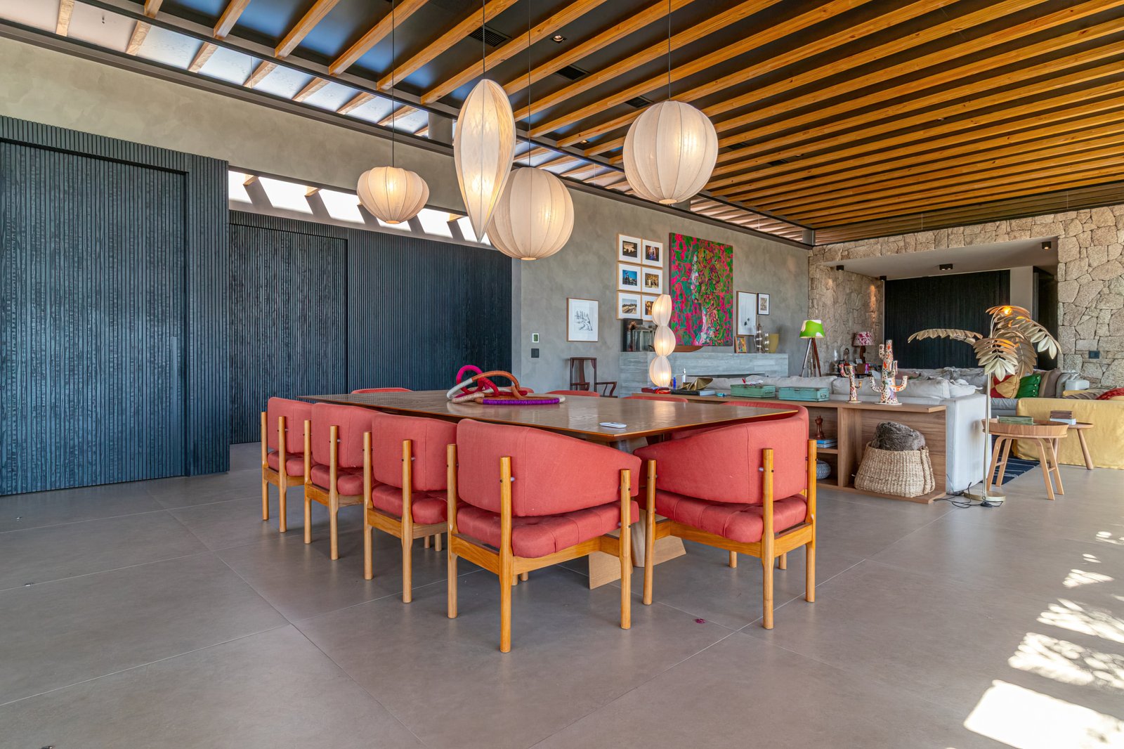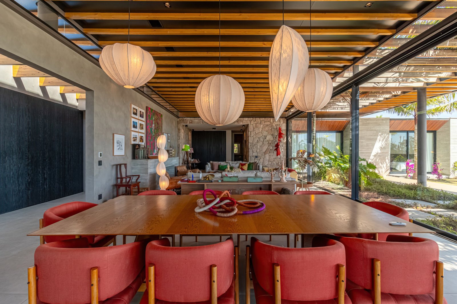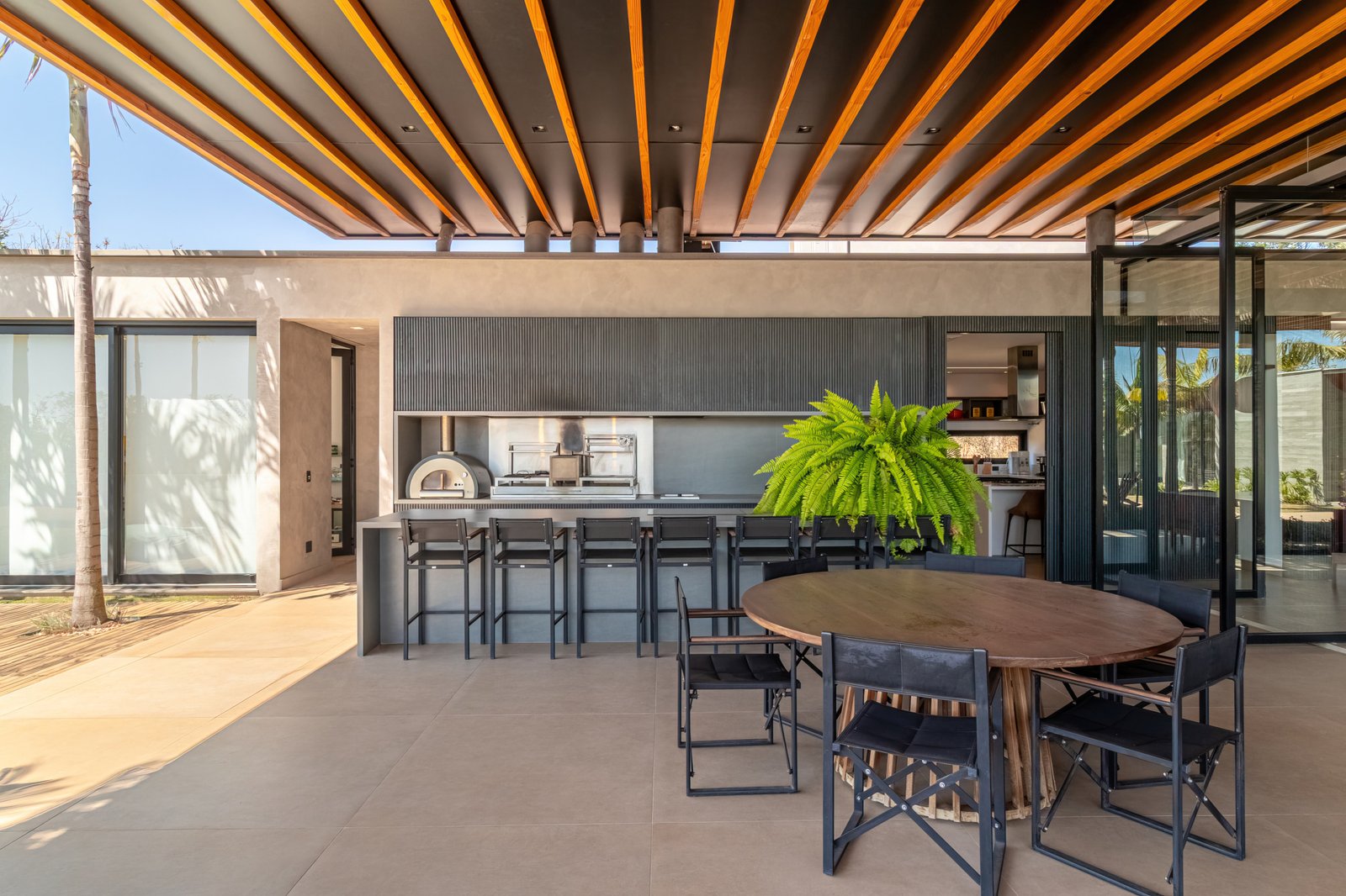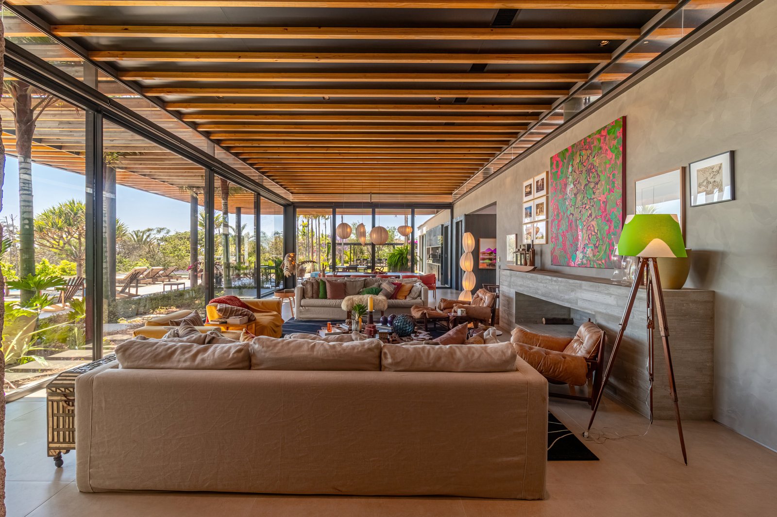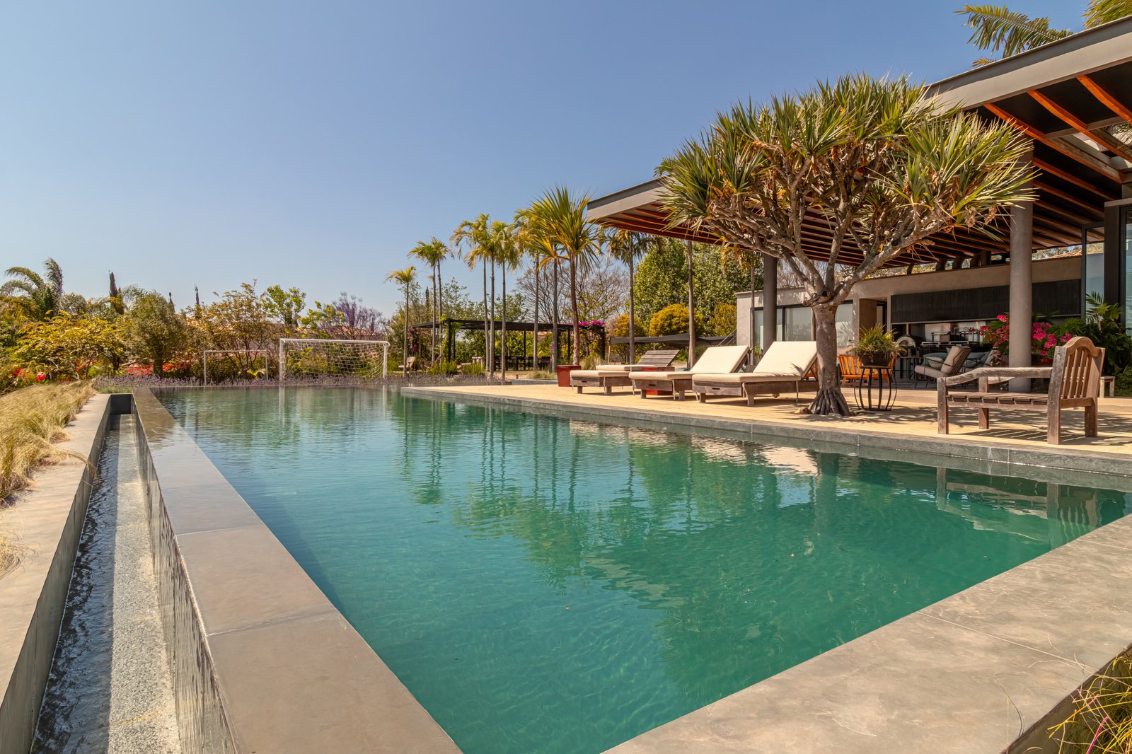 Casa à venda no Condomínio Fazenda da Grama - Itupeva/SP. Residência térrea localizada na parte alta da Fazenda da Grama, em área nobre e silenciosa, fora da rota de aviões e distante dos ruídos do autódromo e de eventos festivos. Com orientação solar norte, o imóvel oferece excelente iluminação natural e conforto térmico ao longo do dia. O projeto arquitetônico é assinado por Lucas Padovani, com interiores desenvolvidos por Paulo Azevedo e paisagismo elaborado por Alexandre Furcolin. A casa conta com cinco suítes, brinquedoteca, quarto de serviço e cozinha equipada com móveis Ornare. Todos os ambientes sociais e o jardim possuem sistema de automação, e a climatização é completa em toda a residência, incluindo uma grelha integrada à sala. A área externa é ampla e contempla um jardim exuberante com pergolado, lareira externa, pomar, horta, campo de futebol e redário. O espaço gourmet é integrado à área social, ideal para receber com conforto e sofisticação. A piscina possui raia, prainha e spa, com aquecimento solar. No rooftop, um generoso deck de madeira oferece vista panorâmica privilegiada. A infraestrutura do imóvel inclui poço artesiano, placas fotovoltaicas, esperas para gerador, tomada para carro elétrico e adega embutida com capacidade para 500 garrafas.