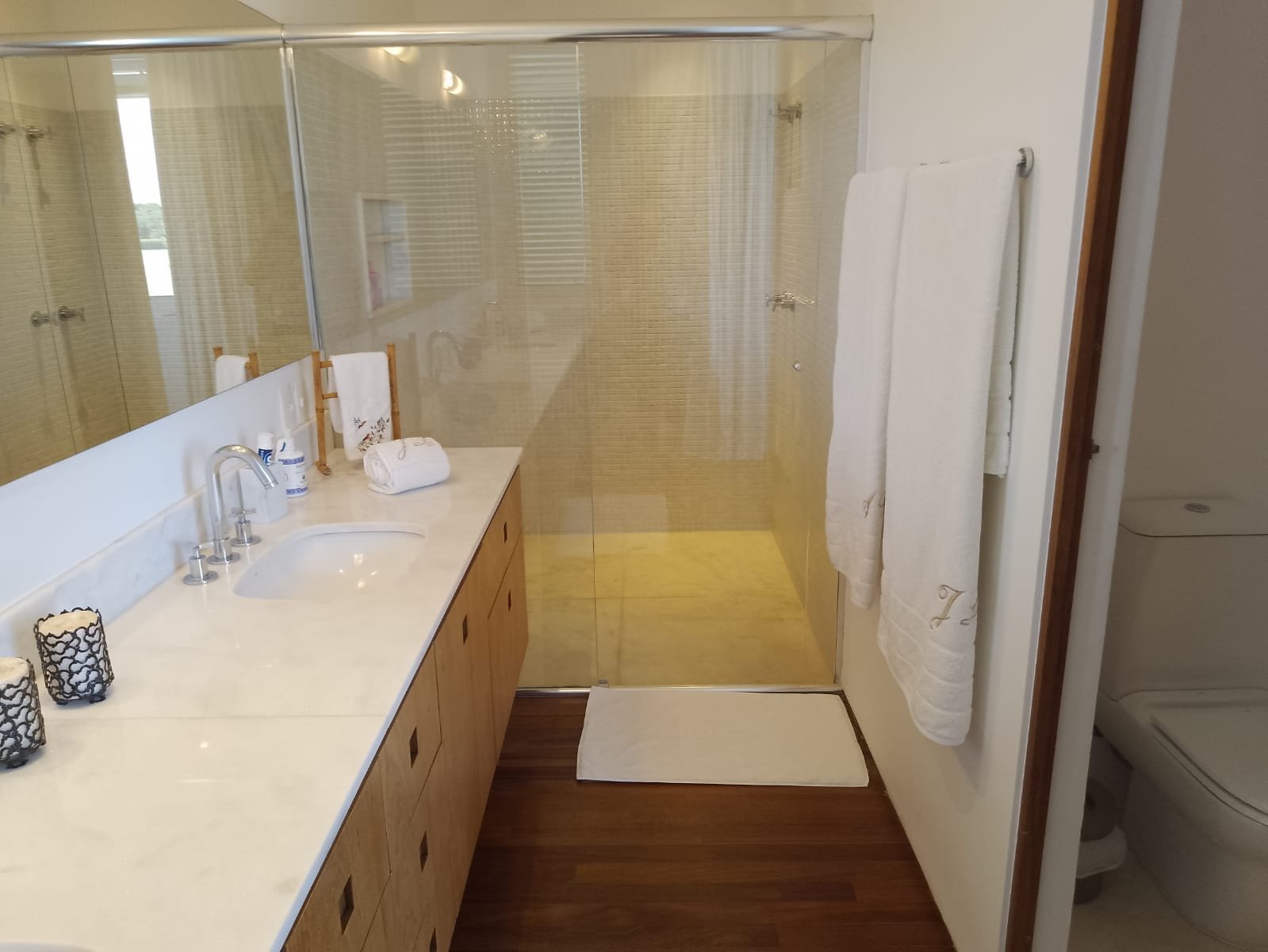 Varanda com area gourmet, salas integradas e suites espaçosas compoem essa casa. Um quintal mais privativo pelo paisagimos mantendo a conexão com a vista e condominio.